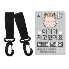 베베댑 유모차 걸이 2p + 아기가 자고있어요 현관 자석 세트, 블랙(유모차걸이), 그레이타이거(자석), 1세트